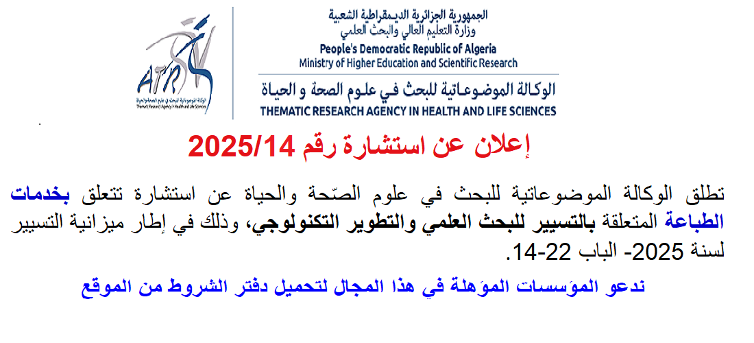 إطلاق الدعوة لتقديم مشاريع البرامج الوطنية للبحث لسنة 2023