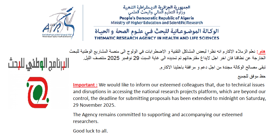 إطلاق الدعوة لتقديم مشاريع البرامج الوطنية للبحث لسنة 2023
